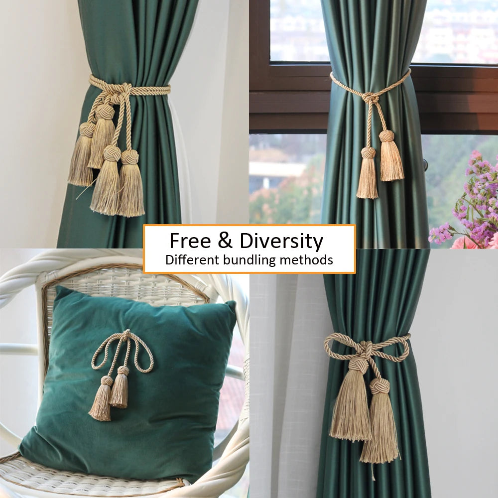 Crafted from high-quality, durable materials, these tiebacks bring a rich, textured look that complements classic, modern, or even bohemian interiors. The dual tassel design adds extra flair, making them a stunning visual accent when your curtains are open.