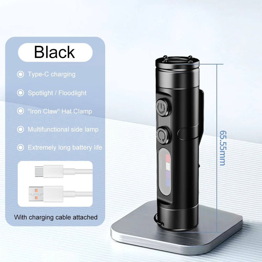 This ultra-compact rechargeable LED tactical torch packs powerful performance into a finger-sized body. Designed with a sturdy hat clip and magnetic base, it allows true hands-free lighting for outdoor adventures, inspections, emergencies, and daily carry. Lightweight yet durable, it’s the perfect pocket-sized lighting tool you’ll always want within reach.
